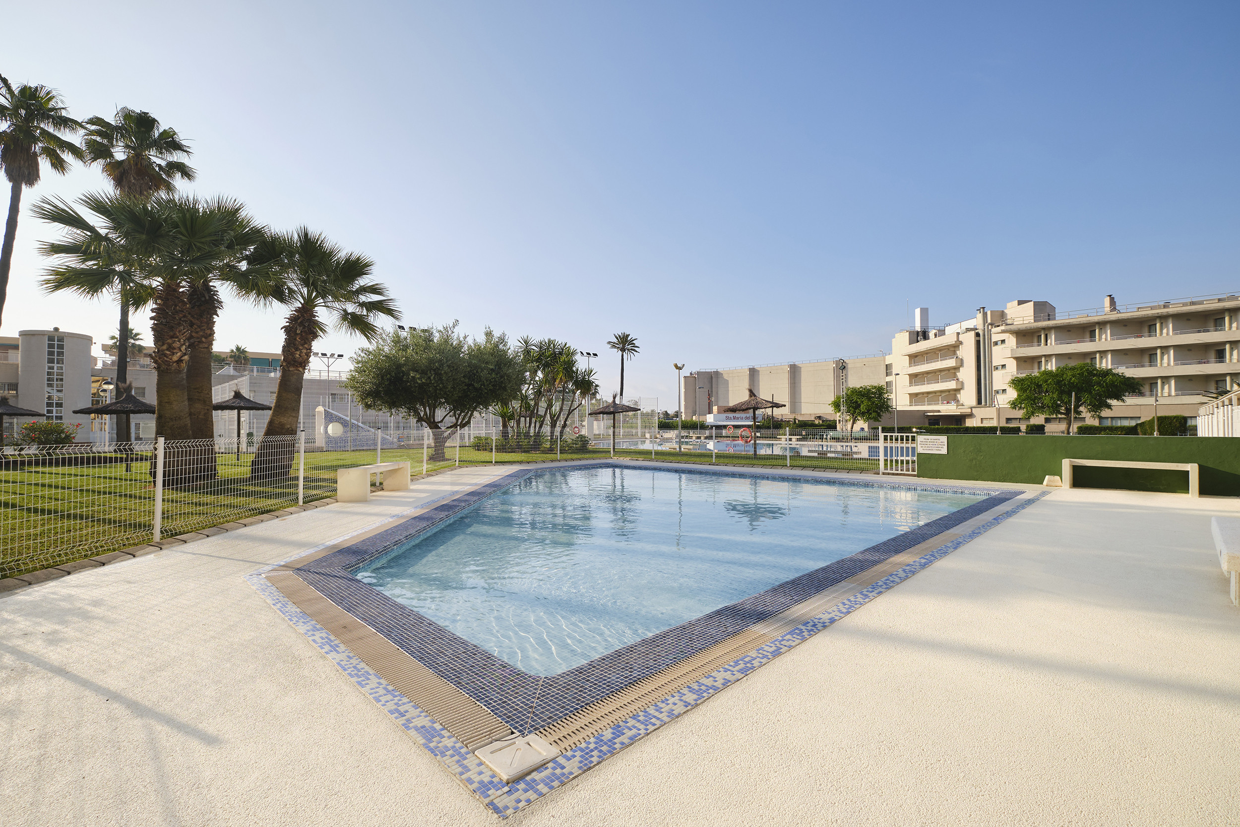 Moreover, the accommodation includes a private covered parking space within the same building, which facilitates parking. Guests can enjoy a shared swimming pool and a children's area, ideal for families with children.