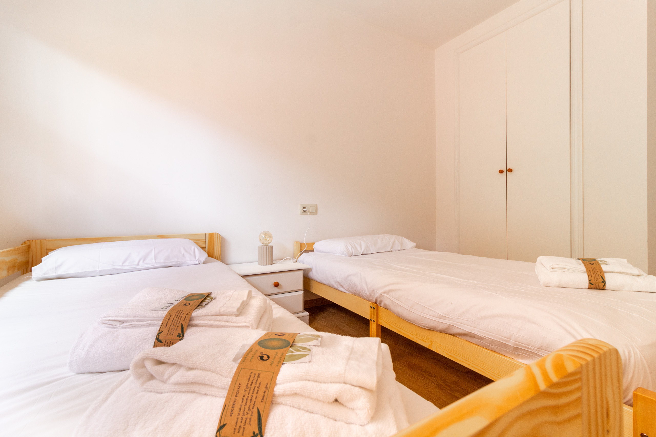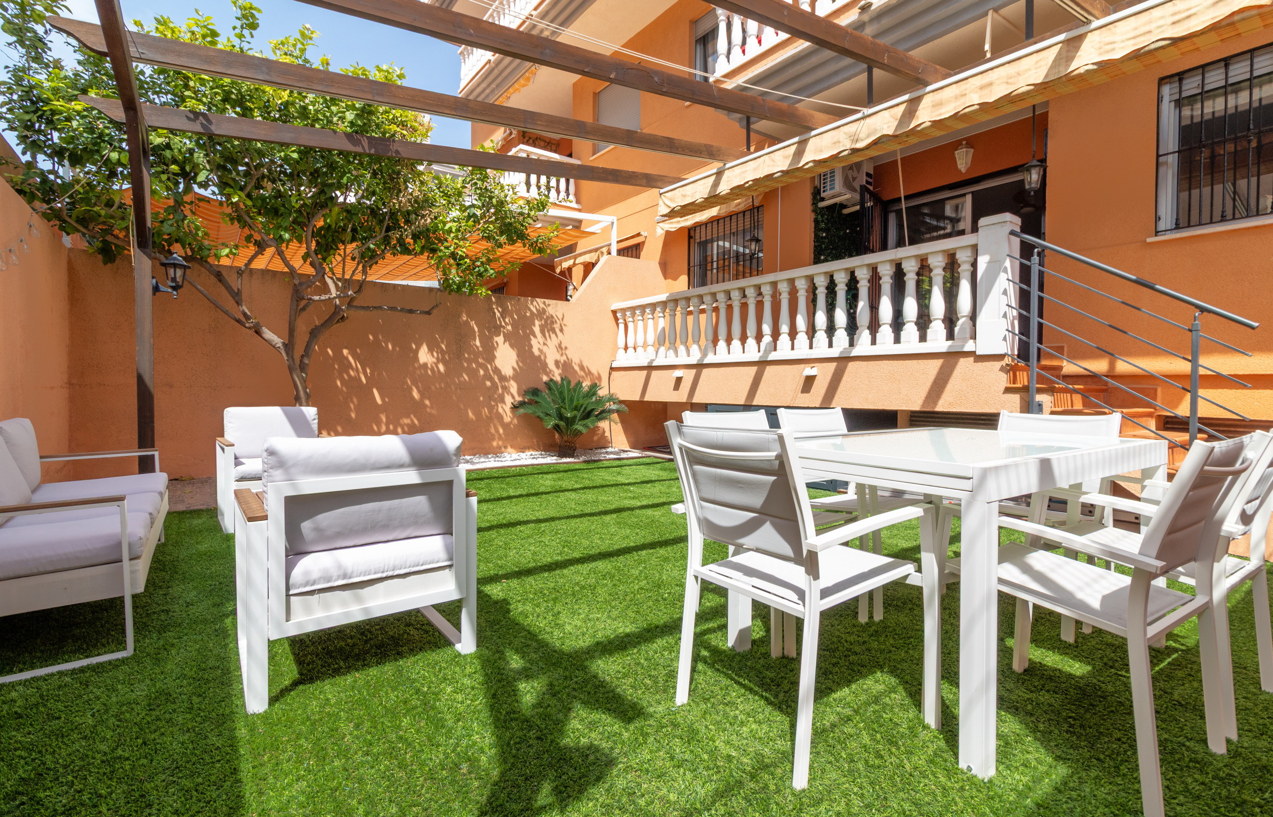 The apartment has 2 well-distributed bedrooms: one with a double bed and another with three single beds. It features a cosy living room, a fully equipped independent kitchen and a complete bathroom with a bathtub. Its spacious 30 m² terrace connected to a private garden stands out, perfect for enjoying the outdoors.