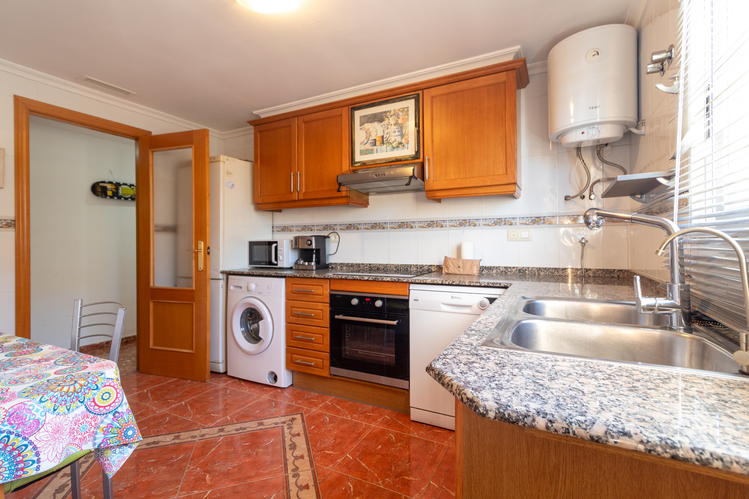 The fully equipped kitchen is one of the accommodation's strengths. It features a ceramic hob, oven, microwave, washing machine, dishwasher, coffee machine, fridge and freezer. Additionally, it includes all the necessary kitchen utensils to prepare home-cooked meals during your stay.